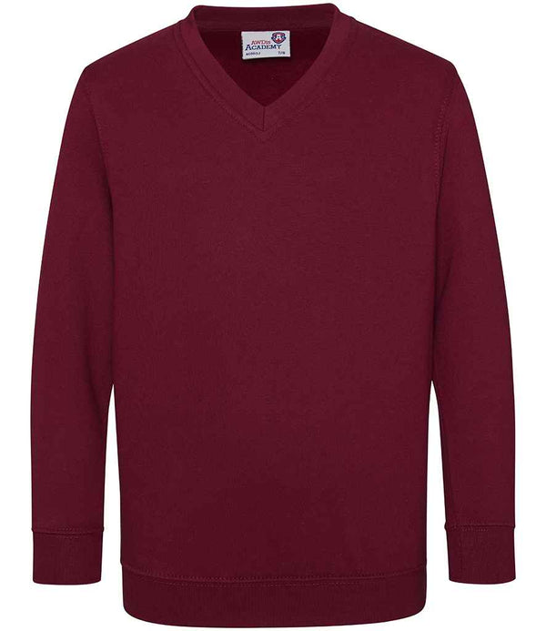 AWDis Academy Kids V Neck Sweatshirt | Burgundy.