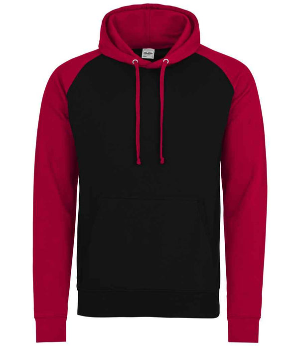 AWDis Baseball Hoodie | Jet Black/Fire Red.