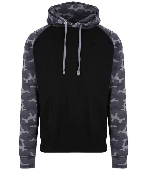 AWDis Baseball Hoodie | Solid Black/Black Camo.