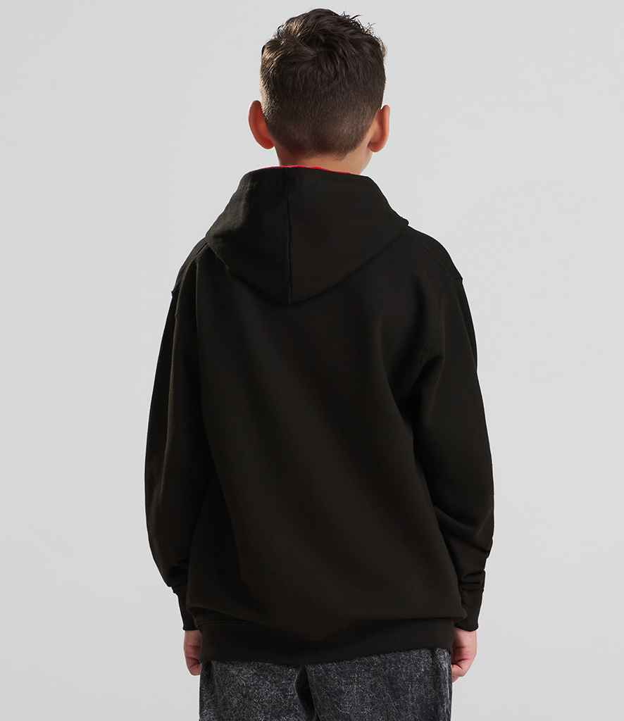 AWDis Kids Varsity Hoodie | Jet Black/Fire Red.