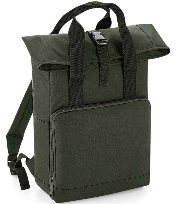 BagBase Recycled Twin Handle Roll-Top Backpack | Olive Green.
