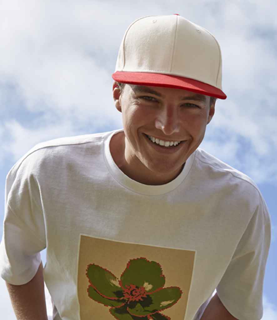 Beechfield Contrast Flat Peak 6 Panel Cap | Natural/Red.