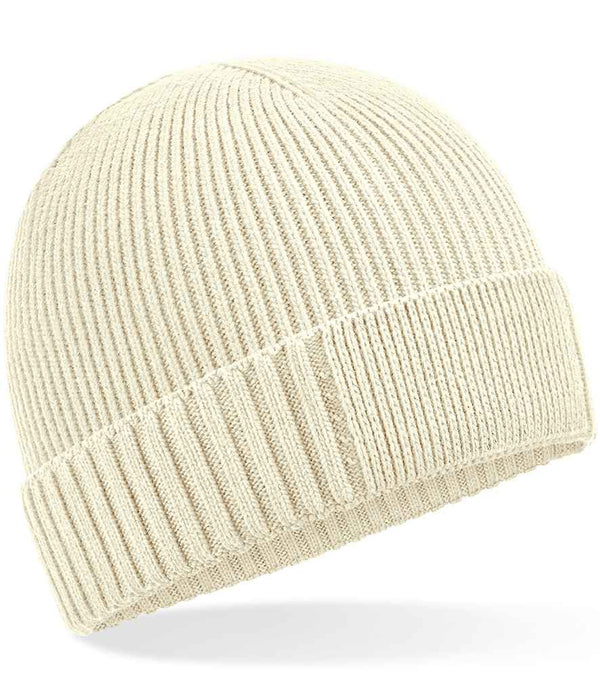 Beechfield Organic Cotton Engineered Patch Beanie | Sand.