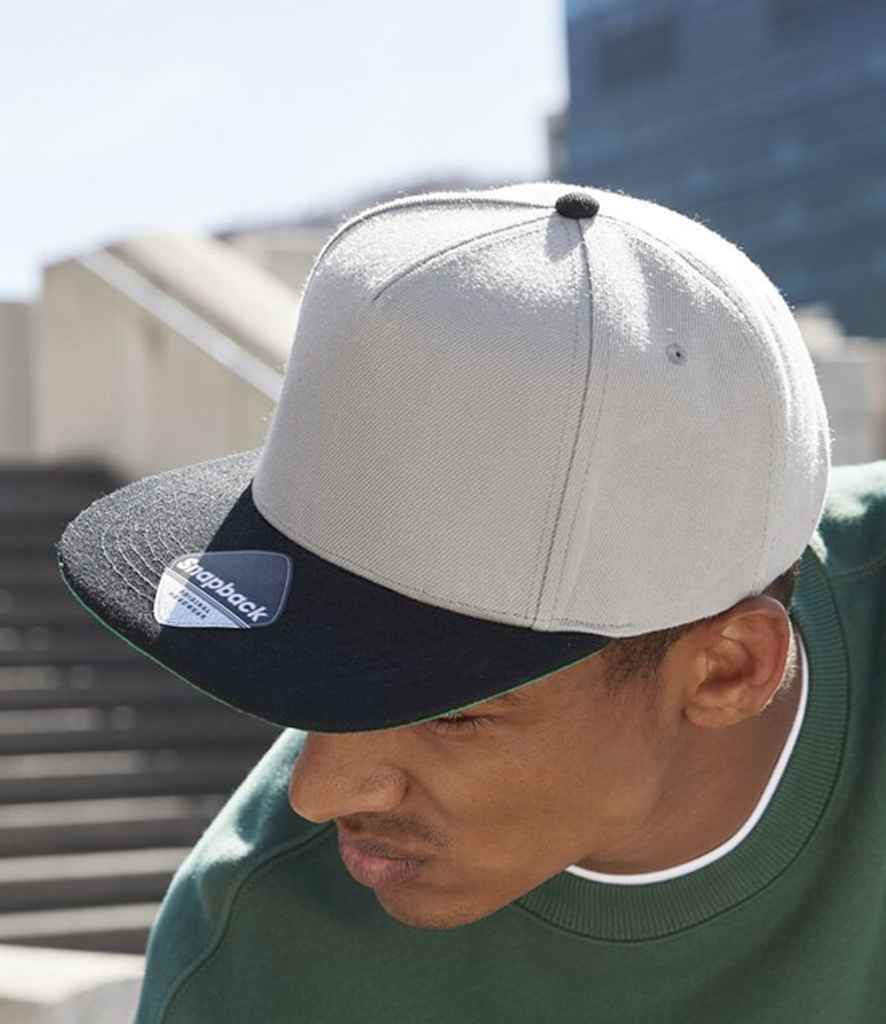 Beechfield Original Flat Peak Snapback Cap | Grey/Black.