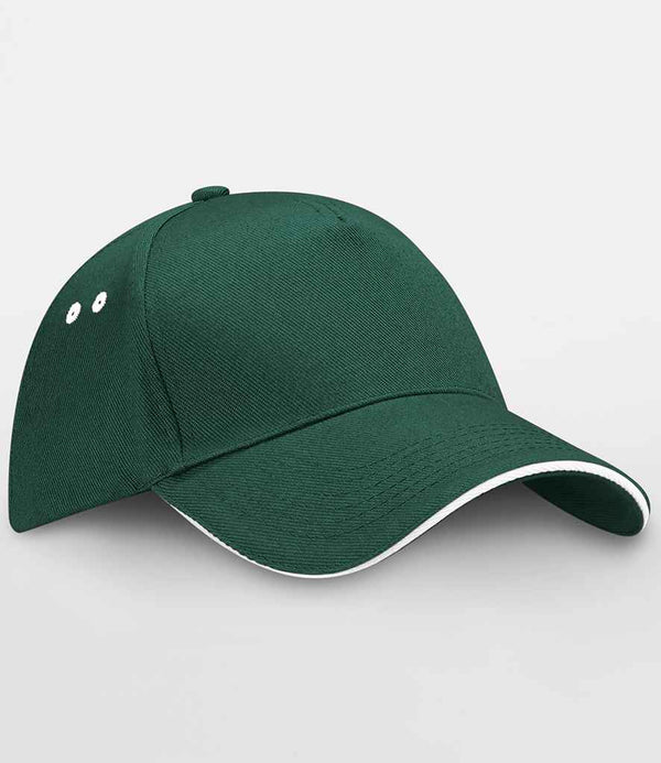 Beechfield Ultimate 5 Panel Cap with Sandwich Peak | Bottle Green/White.