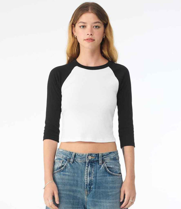 Bella Ladies Micro Rib 3/4 Raglan Baby T-Shirt | White/Black.