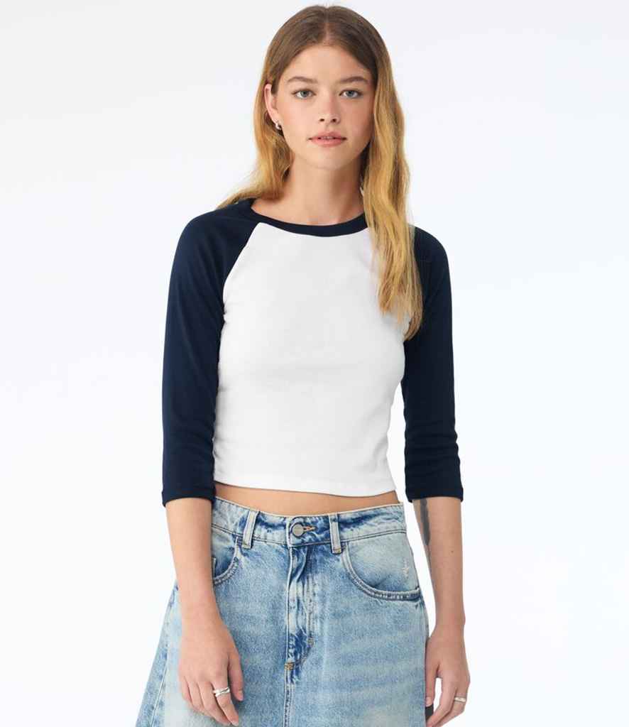 Bella Ladies Micro Rib 3/4 Raglan Baby T-Shirt | White/Navy.