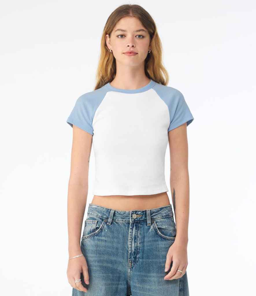 Bella Ladies Micro Rib Raglan Baby T-Shirt | White/Baby Blue.