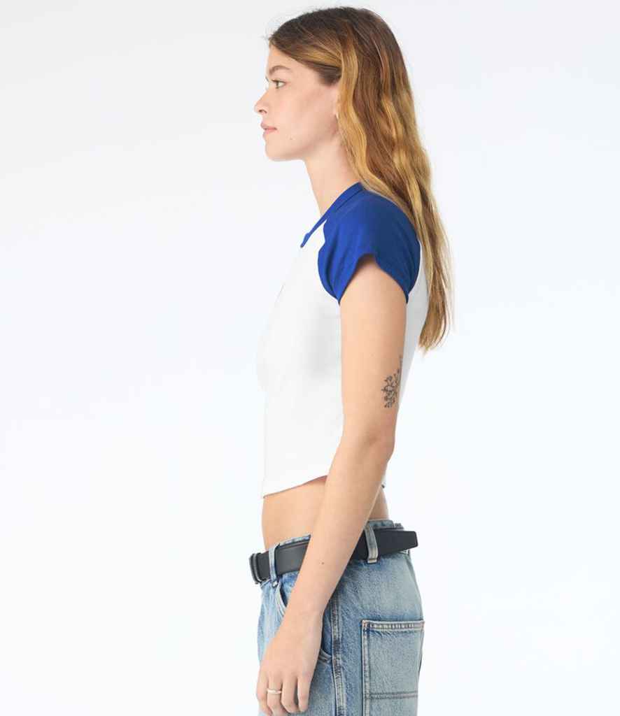 Bella Ladies Micro Rib Raglan Baby T-Shirt | White/Royal Blue.