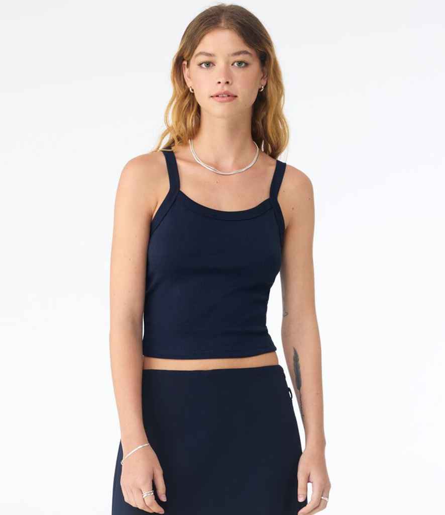 Bella Ladies Micro Rib Spaghetti Strap Tank Top | Solid Navy Blend.