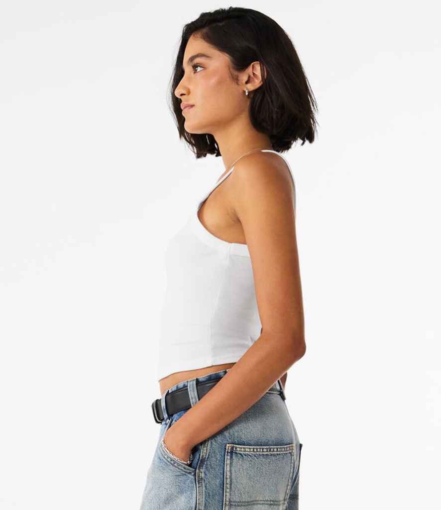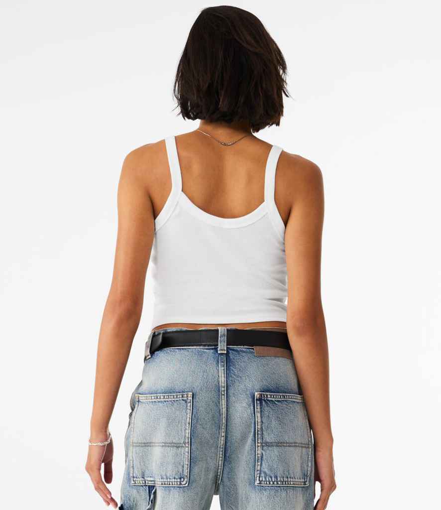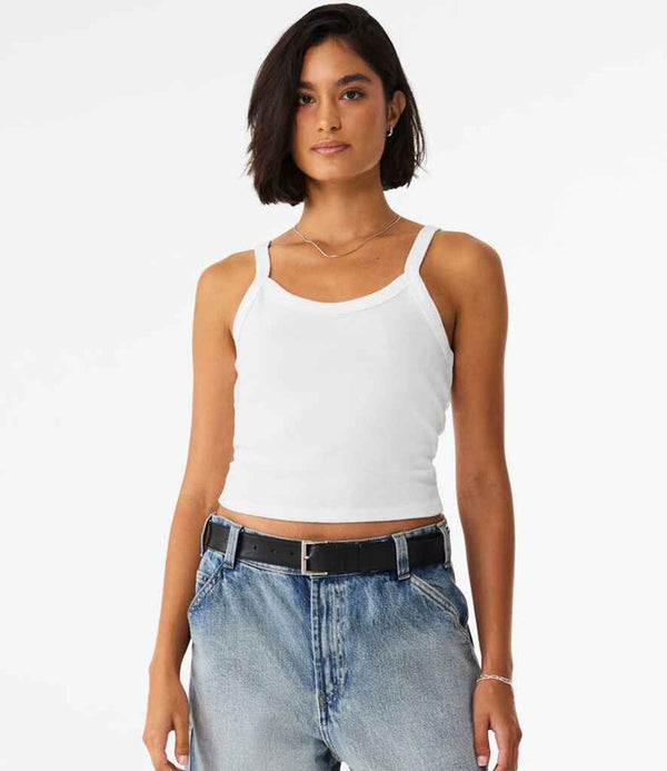 Bella Ladies Micro Rib Spaghetti Strap Tank Top | Solid White Blend.