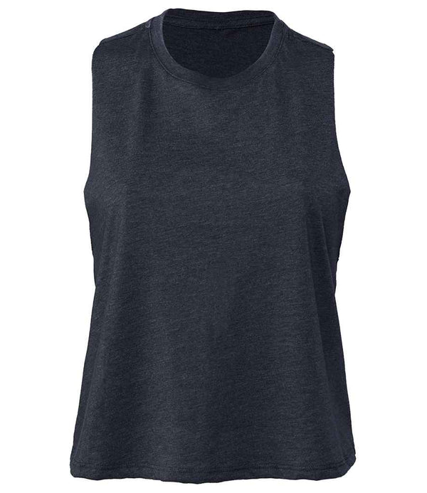 Bella Ladies Racer Back Cropped Tank Top | Heather Navy.