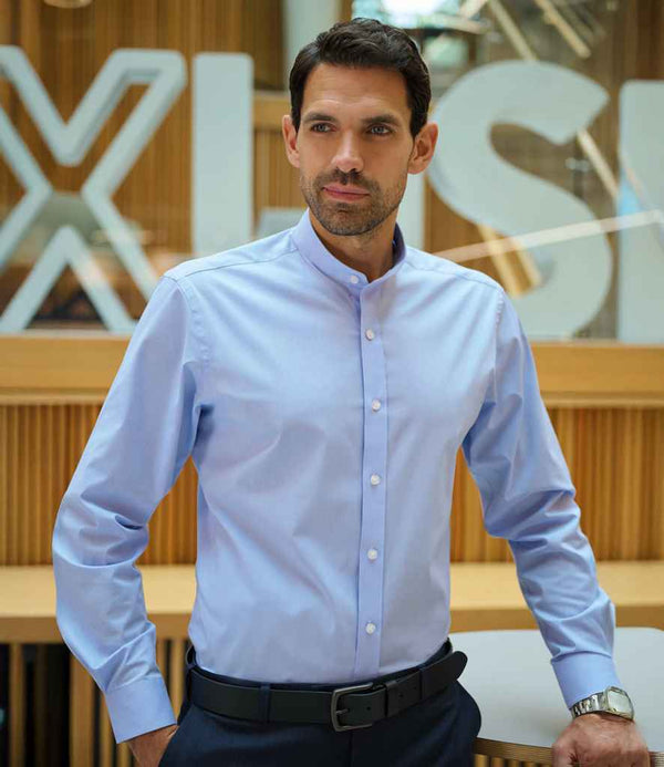 Brook Taverner Volterra Long Sleeve Grandad Collar Shirt | Sky Blue.