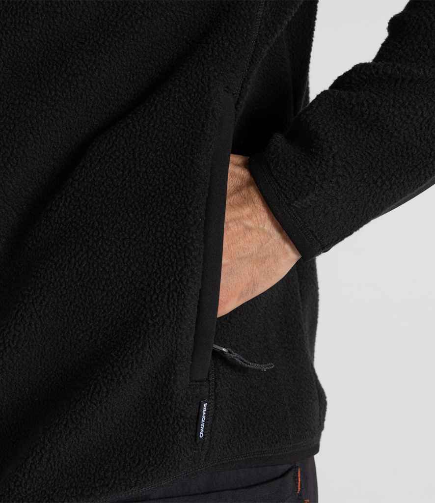 • Borg fleece with poly/elastane soft shell upper body and lower arm panels.