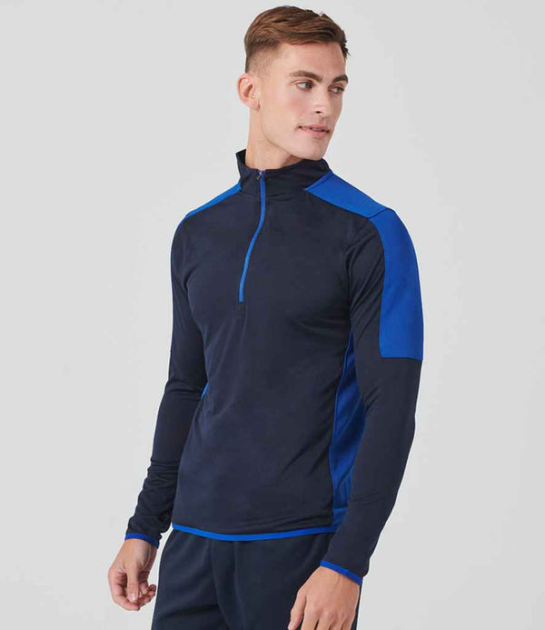 Finden + Hales Contrast Zip Neck Midlayer Top | Navy/Royal Blue.