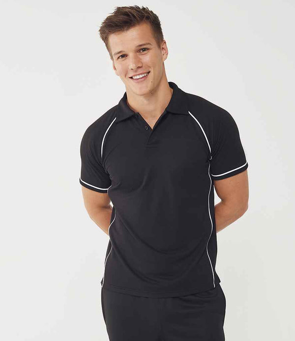 Finden + Hales Performance Piped Polo Shirt | Black/White.