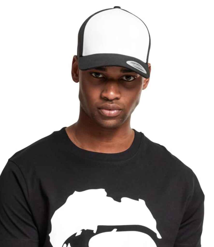Flexfit Retro Coloured Front Trucker Cap | Black/White.