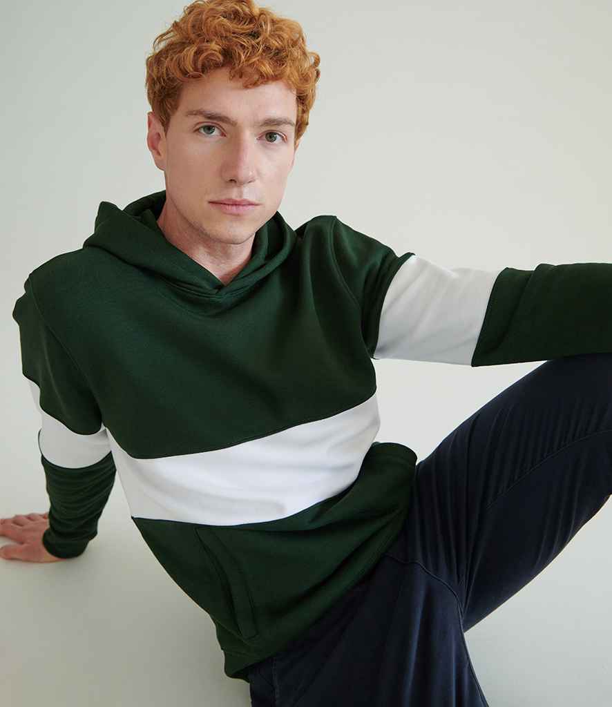 Front Row Heavyweight Panelled Hoodie | Bottle Green/White.