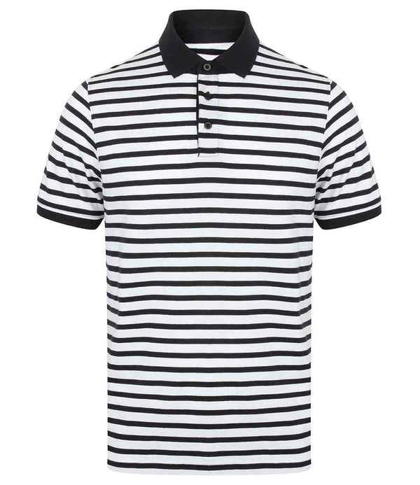 Front Row Striped Jersey Polo Shirt | White/Navy.