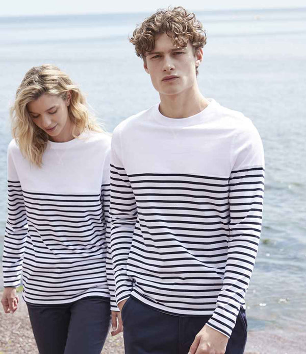 Front Row Unisex Long Sleeve Breton Striped T-Shirt | White/Navy.