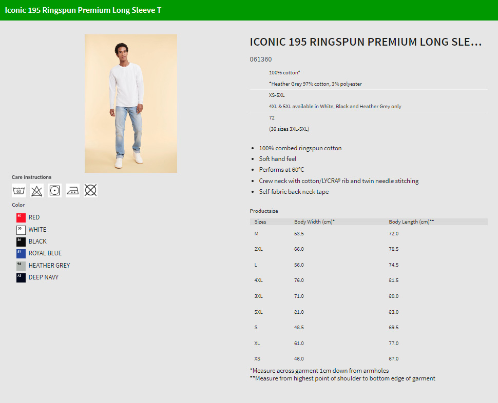 Fruit Loom Iconic 195 Long Sleeve T-Shirt | Heather Grey.