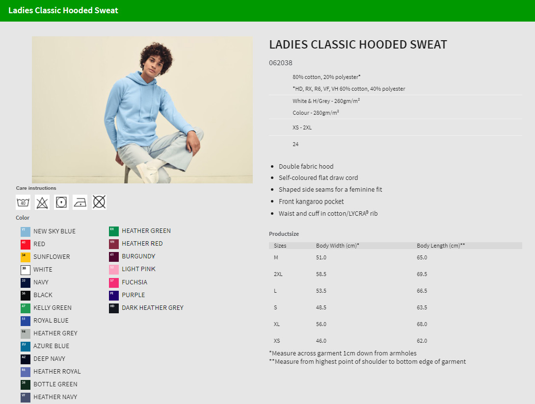 Fruit of the Loom Classic Lady Fit Hooded Sweatshirt | Heather Grey.