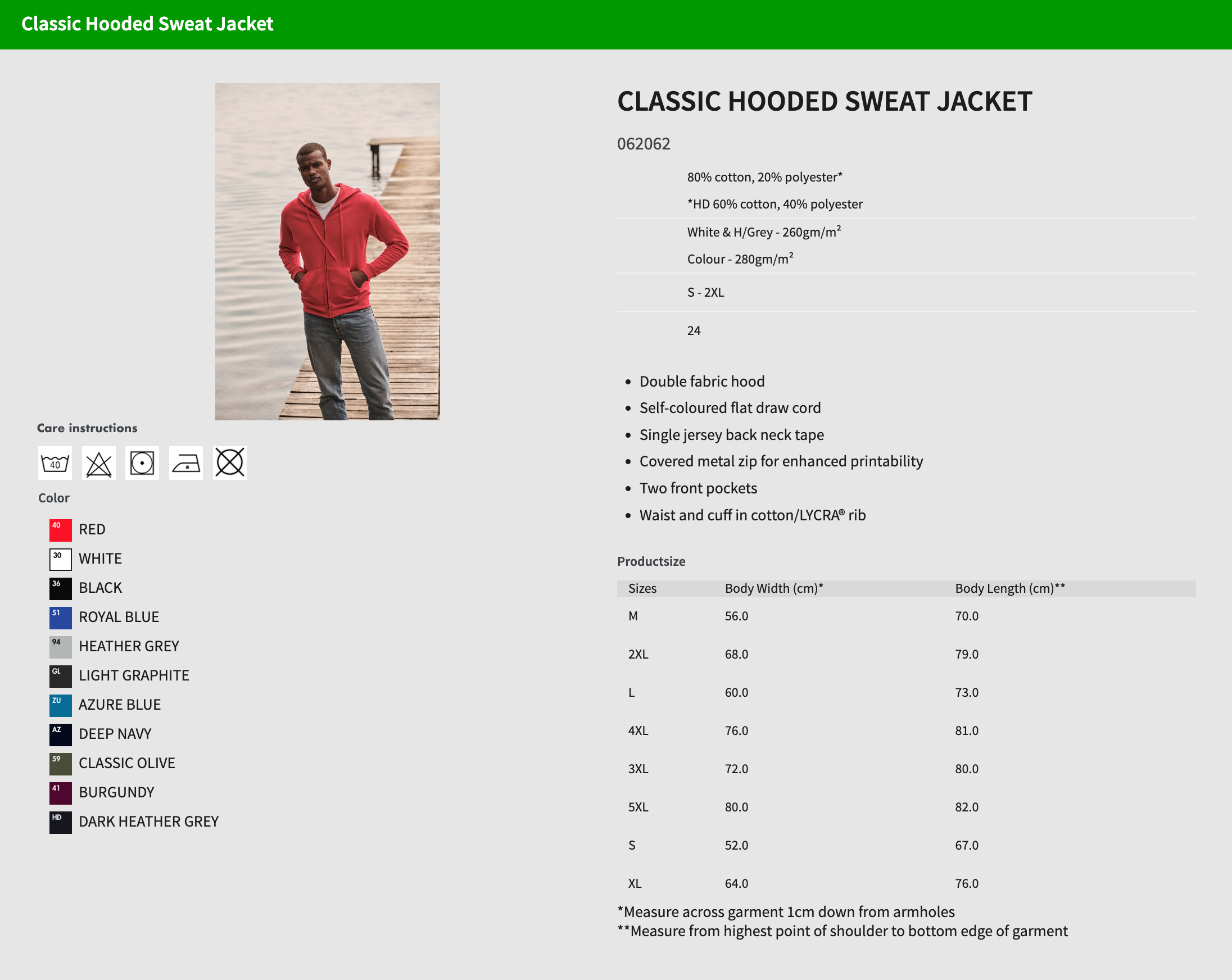 Weight: White and Heather Grey 260 gsm, Cols 280 gsm
