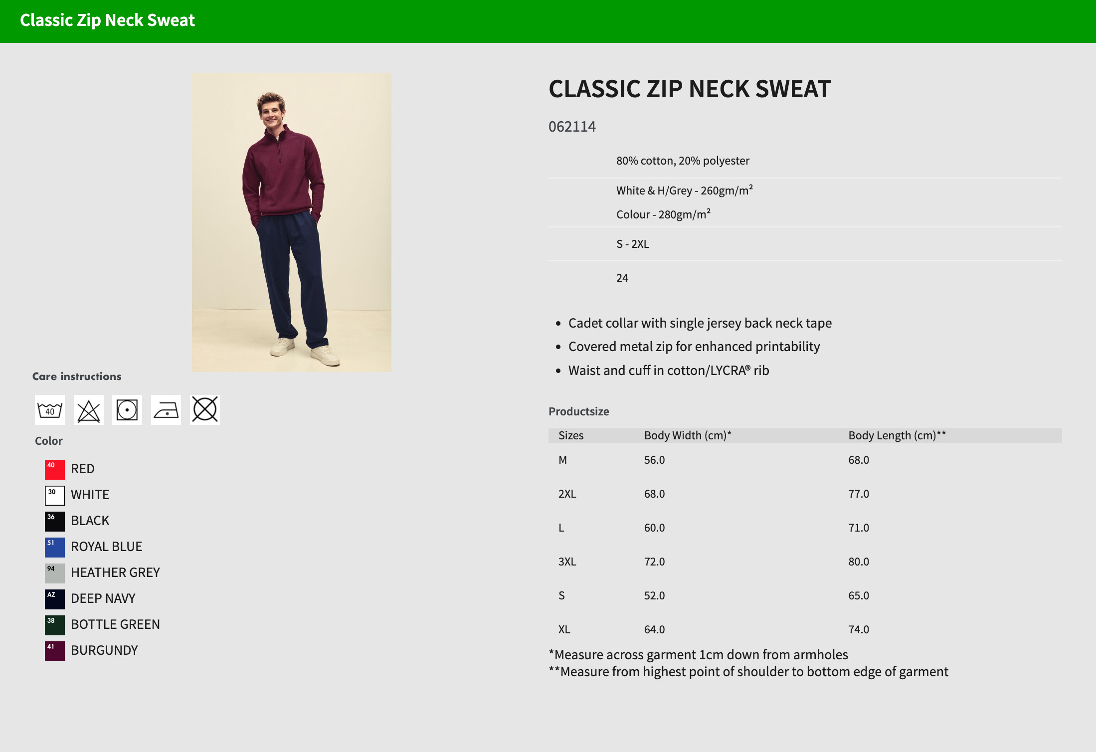 Weight: White and Heather Grey 260 gsm, Cols 280 gsm