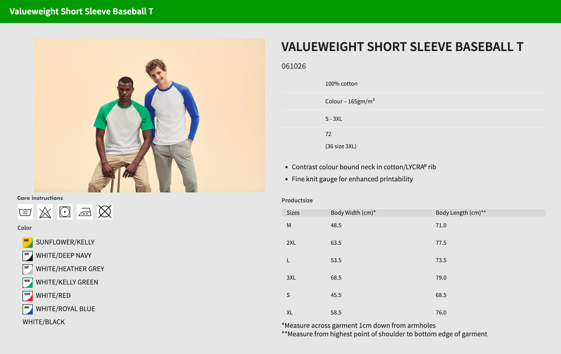 Fruit of the Loom Contrast Baseball T-Shirt | White/Royal Blue.