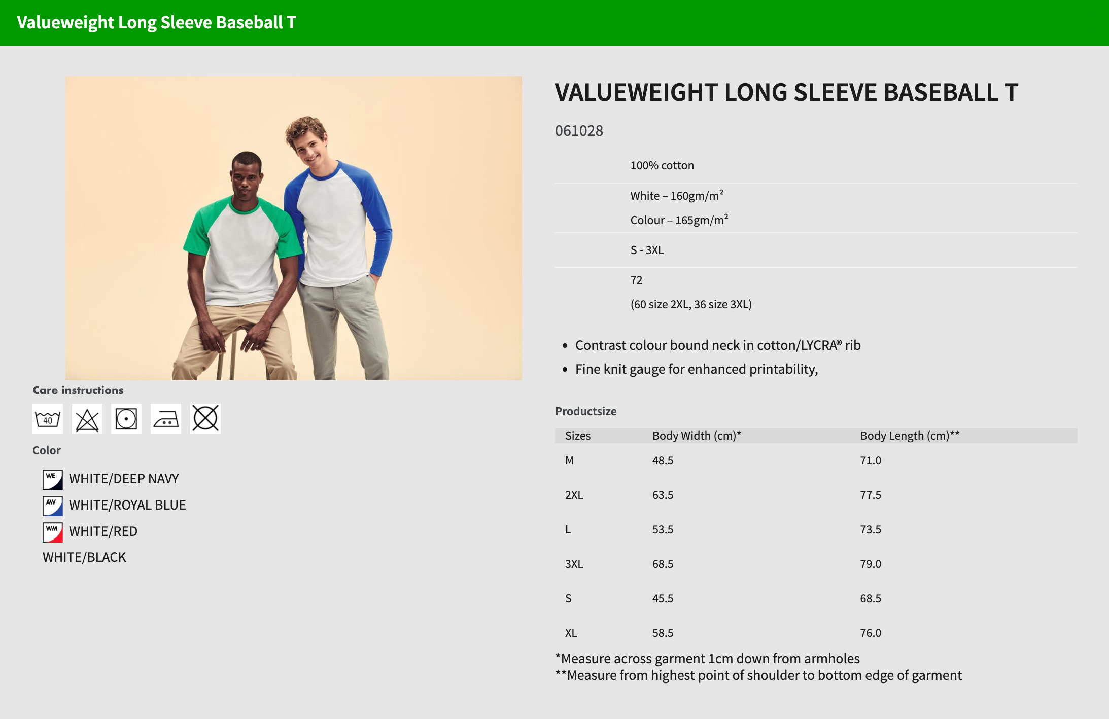 Weight: Body 160 gsm, Sleeves 165 gsm