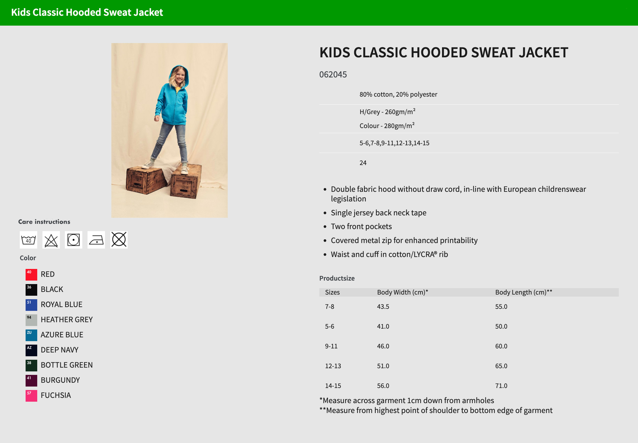 Weight: Heather Grey 260 gsm, Cols 280 gsm