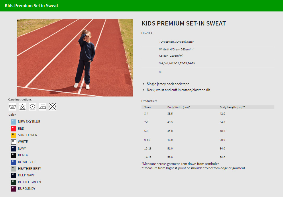 Weight: White and Heather Grey 260 gsm, Cols 280 gsm