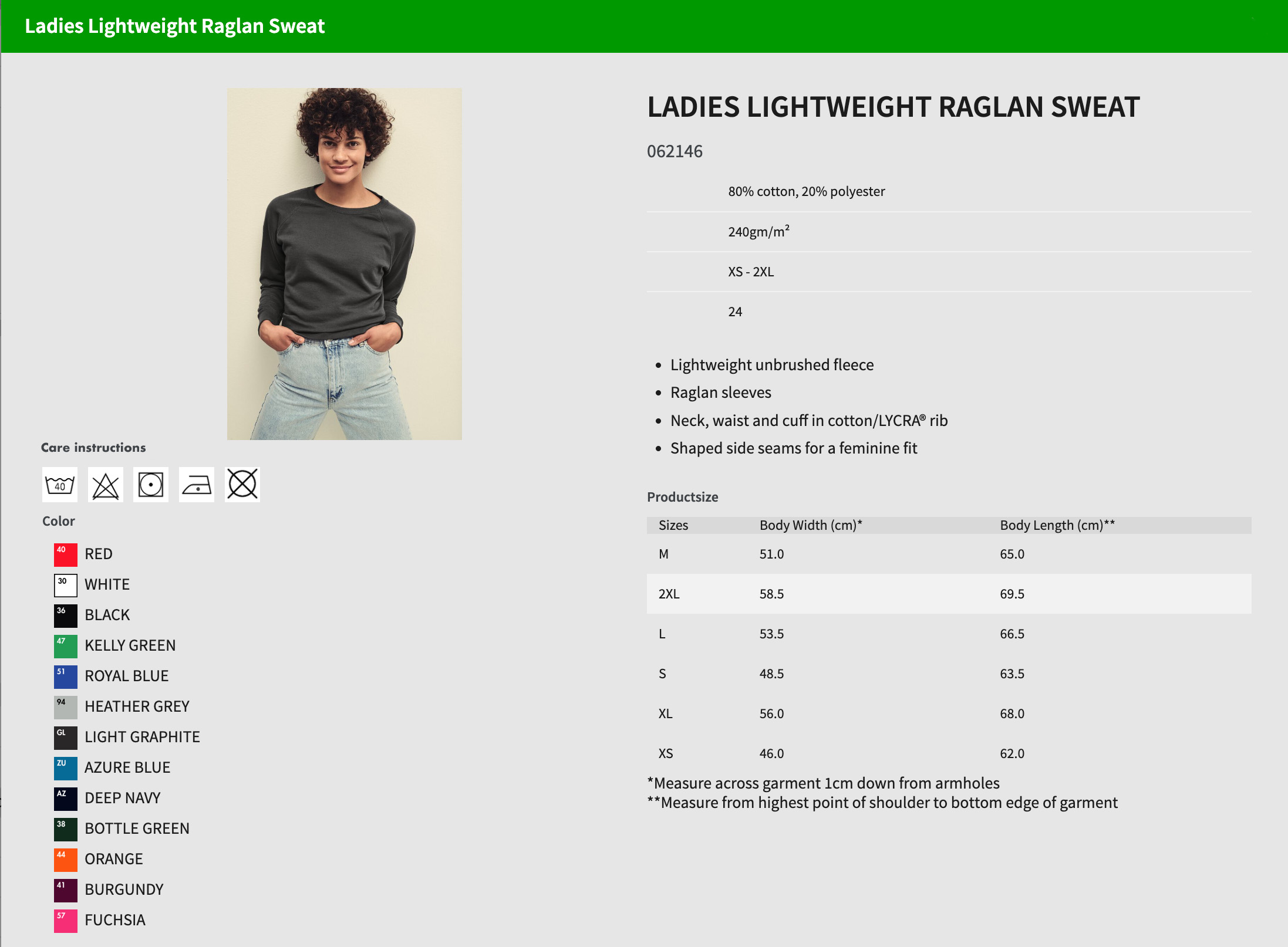Fruit of the Loom Lady Fit Lightweight Raglan Sweatshirt | Black.