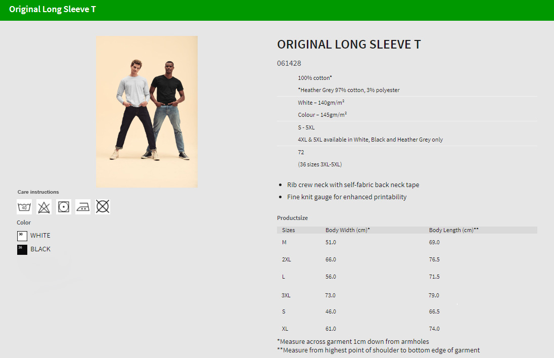 Fruit of the Loom Original Long Sleeve T-Shirt | White.