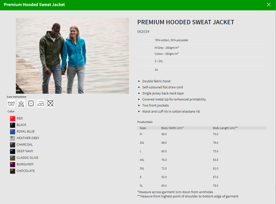 Online branding includes embroidery or transfer printing. You can find out more about our transfer printing methods here. Once we receive your online order we will choose the best type of transfer print to suit your product, logo and branding position.