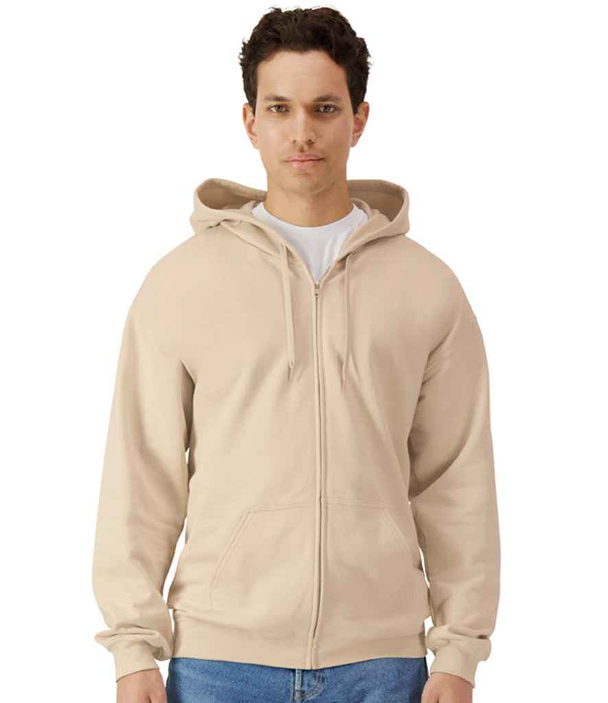 Gildan SoftStyle® Midweight Full Zip Hooded Sweatshirt | Sand.