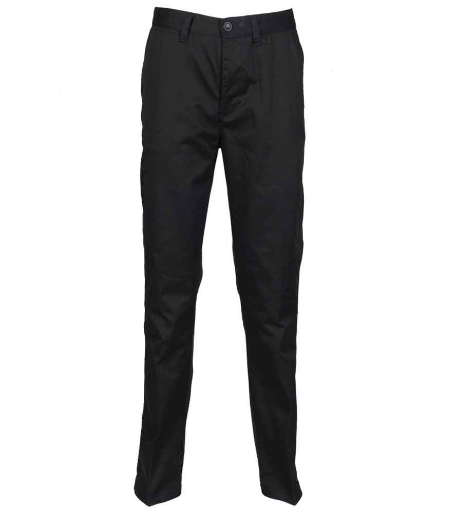 Henbury 65/35 Flat Fronted Chino Trousers | Black.