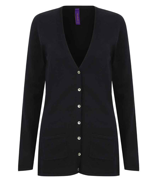 Henbury Ladies Cotton Acrylic V Neck Cardigan | Navy.