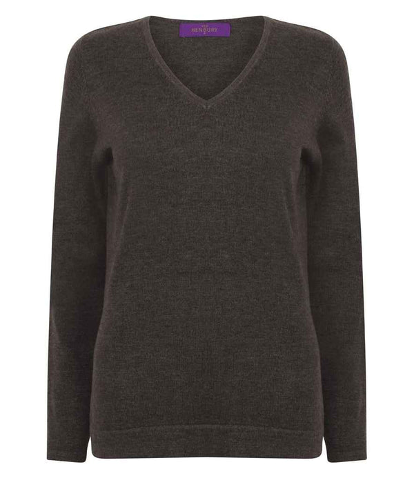 Henbury Ladies Lightweight Cotton Acrylic V Neck Sweater | Grey Marl.