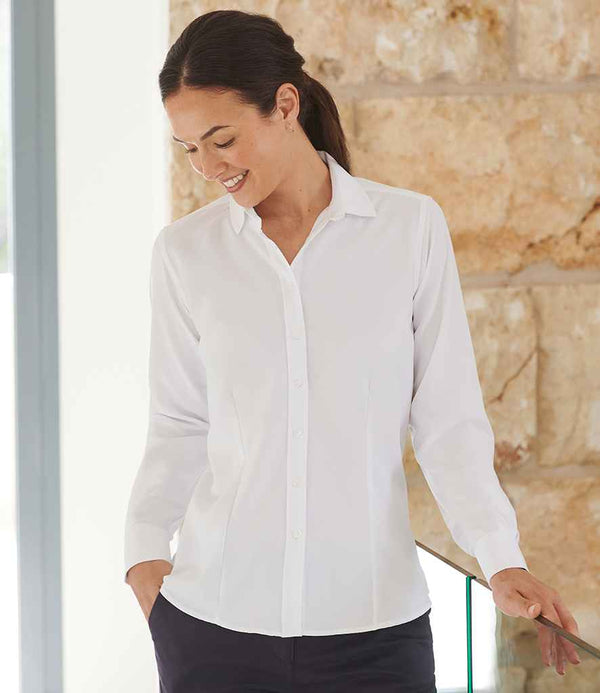 Henbury Ladies Long Sleeve Wicking Shirt | White.