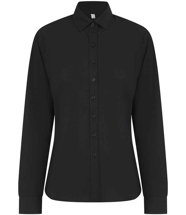 Henbury Ladies Long Sleeved Cotton Feel Coolplus® Shirt | Black.