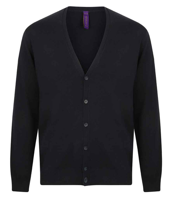 Henbury Lightweight Cotton Acrylic V Neck Cardigan | Navy.