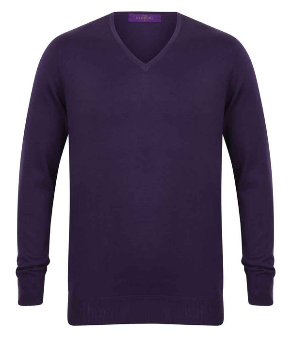 Henbury Lightweight Cotton Acrylic V Neck Sweater | Purple.