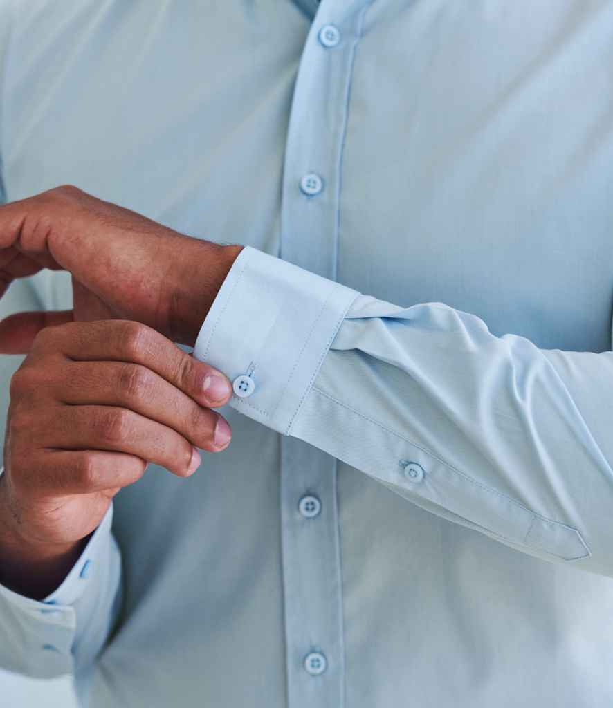 Henbury Long Sleeved Cotton Feel Coolplus® Shirt | Light Blue.