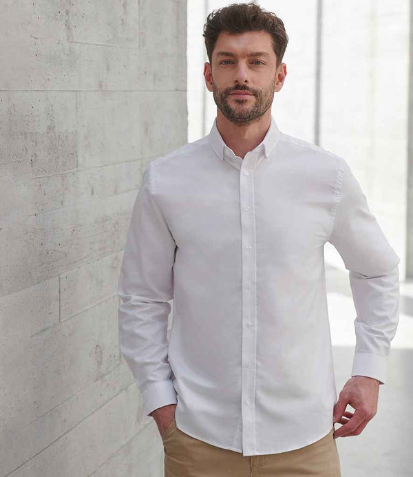 Henbury Modern Long Sleeve Classic Fit Oxford Shirt | White.