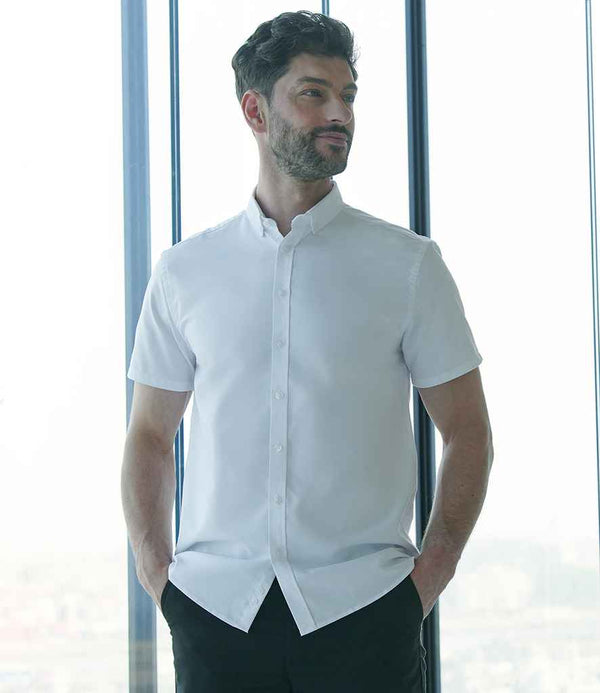 Henbury Modern Short Sleeve Regular Fit Oxford Shirt | White.