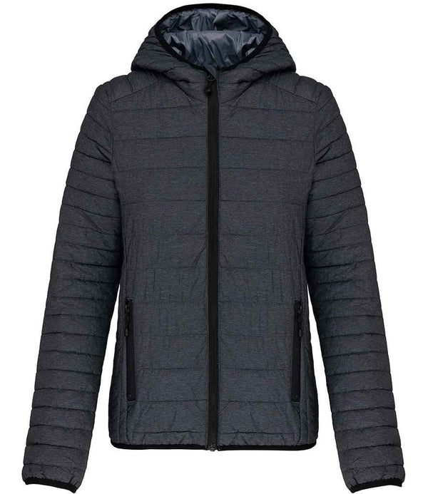 Kariban Ladies Lightweight Hooded Padded Jacket | Marl Dark Grey.