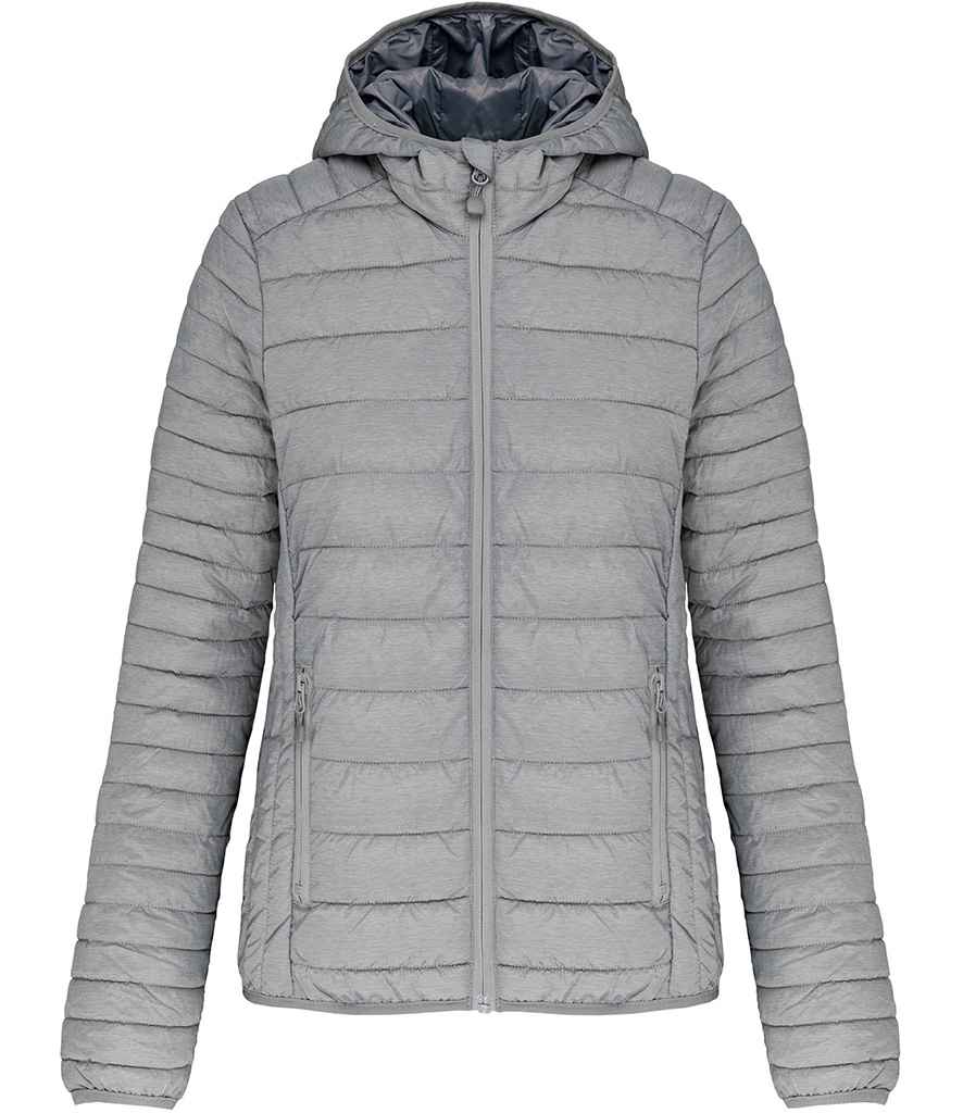 Kariban Ladies Lightweight Hooded Padded Jacket | Marl Silver.