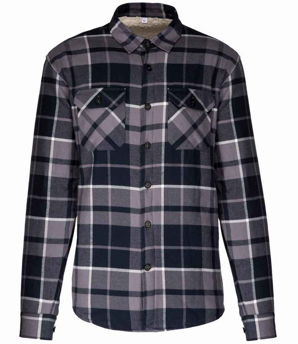 Kariban Sherpa Lined Checked Shirt Jacket | Storm Grey/Navy.