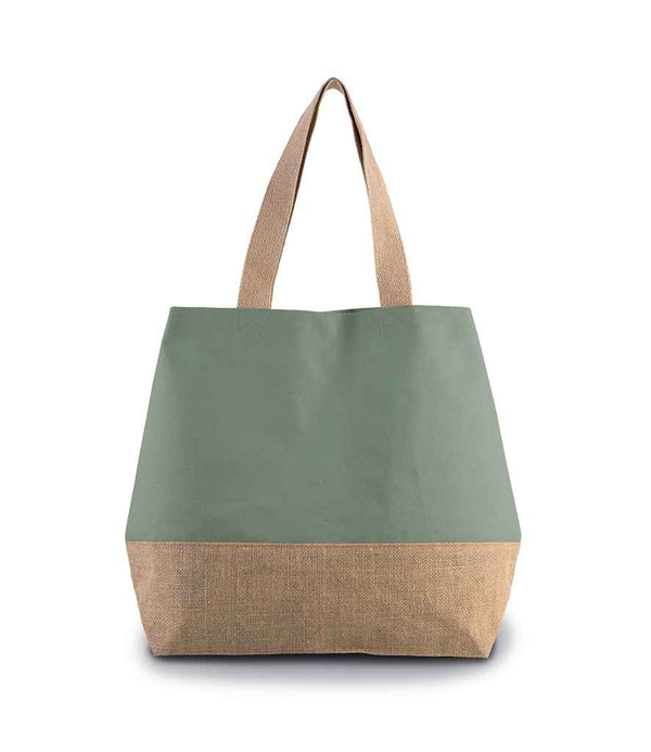 Kimood Canvas & Jute Shopper | Dusty Light Green/Natural.